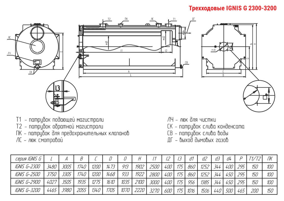 Технические характеристики водогрейного трёхходового котла ARCUS IGNIS G-2500