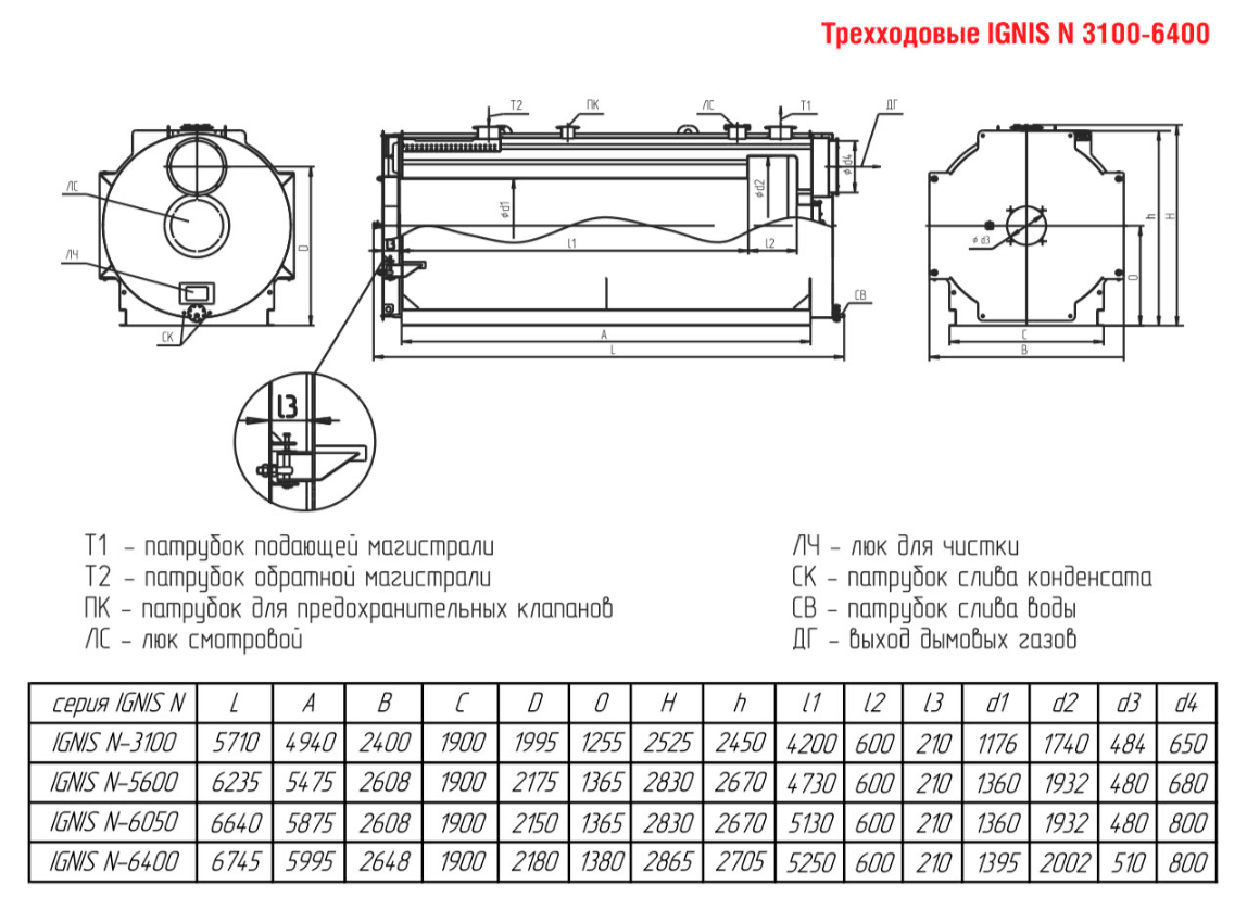 Технические характеристики водогрейного трёхходового котла для тепличных хозяйств ARCUS IGNIS N-3100